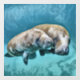 Mother and baby manatees swimming in a swirled blue sea. Great design for manatee lovers.