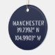 Manchester England Latitude Longitude Ceramic Tree Decoration