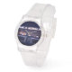 I only have one complaint. I ordered the watch with clear case and strap, and what was sent was white case and strap. I'm going to keep it because 1) it looks very nice in white, and 2) it would take too long to get a replacement made and sent in time for my occasion. Aside from the mix up with the color, the watch does look very good in white. The purple dial is actually sparkly which did not show in the online images. That was a nice surprise. If you like Swatch watches this is very similar to those. It's 33.6mm in diameter, 10.5mm thick, and 40.6mm lug to lug. Stainless steel case back says 3ATM/30m WR, so no swimming or showering or submerging this one. If you like Woodstock, this is a great choice.