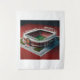 Wall Art & Décor: A stylised blueprint of Old Trafford featuring clean line art, red accents, and labels for iconic areas like the Stretford End.