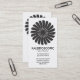 A stylish business card template with an attractive round geometric motif. Main company details on the front, with name and personal contact on the back.