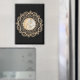 A symmetrical mandala design featuring intricate a yin yang floral pattern in gold and silver.
