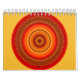 12 months of colourful mandala art designed calendar pages including full colour front and back for a total of 14 pages.