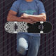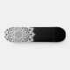 A vibrant white on black mandala skateboard with a stunning symmetrical pattern. Unique and bold symbol of the universe.