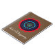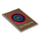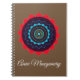 Lovely brown, blue, red vector art mandala and custom name, text and background color on your notebook.