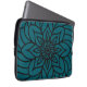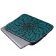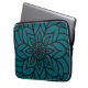 This laptop sleeve features a bold, intricate floral mandala design in deep teal and black. The symmetrical pattern radiates from the centre, showcasing layered petals and flowing lines for a modern yet elegant look. Perfect for adding a touch of artistic flair to your everyday style.