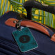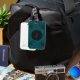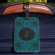 This cool luggage tag boasts a vibrant teal background with a sleek black mandala pattern and a customisable circle for your name! It'll make your bags stand out in style.