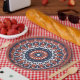 Mandala Design in red and blue colours. Coloured mandala paper plate