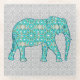 Mandala flower elephant - turquoise, grey & white glass coaster