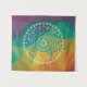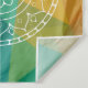 Modern ombre rainbow background, white mandala oriental flower, hippie chic, colourful indian boho design.