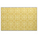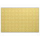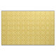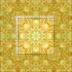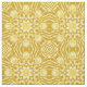 Fabric in an ornate, geometric flower pattern in shades of deep mustard gold with deep and pastel yellow