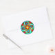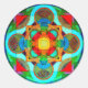 An intensely colourful original hand drawn mandala design on a sticker. A drawing done with markers in a pointillistic fashion to create a vibrant, eye-catching work of art of intense positive energy.