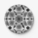 Twelve point mandala pattern paper plates in classic black and white with shades of grey / grey, from light silver to deep graphite