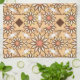 Kitchen towel in a twelve point mandala pattern in shades of caramel tan, chocolate brown, and terracotta