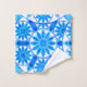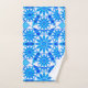 Towel set in a twelve point mandala pattern in shades of cobalt and cerulean blue with turquoise and aqua, accented with white