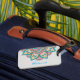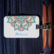 A colourful ethnic print pattern of mandalas from Indian or Moroccan / Middle Eastern culture. This vibrant design has pink blue, yellow and a whole range of colourful and intricate mandala designs. Personalised name makes a good travel gift
