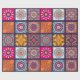 A colourful ethnic print pattern of mandalas from Indian or Moroccan / Middle Eastern culture. This vibrant design has pink blue, yellow and a whole range of colourful and intricate mandala designs.