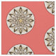 Twelve point mandala pattern in shades of deep chocolate brown, cream and beige on a deep coral pink background