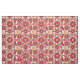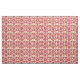 Twelve point mandala pattern in shades of coral red, peach, grey and white, outlined in black and accented with gold