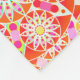 Fleece blanket in a twelve point mandala pattern in coral red, shades of pink, and gold