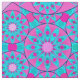 Twelve point mandala pattern fabric in shades of turquoise, aqua, fuchsia and pink, outlined in dark navy