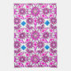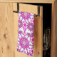 Kitchen towel in a twelve point mandala pattern in shades of pink, hot pink / fuchsia, black and white accented with cobalt blue