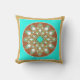 Twelve point mandala pattern in shades of chocolate brown, tan and turquoise with a chocolate brown background, framed in turquoise and camel tan