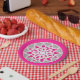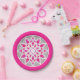 Mandala pattern in fuchsia pink, white and grey paper plate