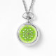 Twelve point mandala pattern in shades of pale to deep lime green, accented with white, on a lime background