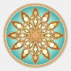 Mandala pattern in tan, cream and turquoise classic round sticker