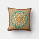 Twelve point mandala pattern in shades of light chocolate, tan and cream with a shaded turquoise background, framed in tan and chocolate