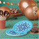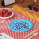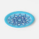 Twelve point mandala pattern in shades of pale blue, cobalt / navy, and white on a turquoise background