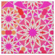 Twelve point mandala pattern in shades of fuchsia pink, peach and coral, outlined and accented with white