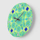 Twelve point mandala pattern in turquoise, blue, and shades of lime green accented with royal blue