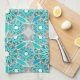 Mandala Pattern, Turquoise, Silver Grey and White Tea Towel