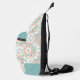 Mandala pattern sling bag in peach, teal, orange and white with optional personalisation with a monogram in your choice of font styles, size and colour with coordinating solid teal accents. Change or delete the sample text and circle frame in EDIT. ASSISTANCE:  For help with design modification or personalisation or if you would like coordinating items, contact the designer BEFORE ORDERING via the Zazzle Chat MESSAGE tab below or email makeitaboutyoustore@gmail.com.