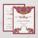 Mandala rangoli cerise maroon elephant Indian wedding budget invitation.