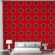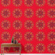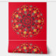Mandala Red Yellow Orange Brown on red Background.