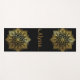 A beautiful yoga or exercise mat featuring a hand-drawn mandala design in a gold tone over a solid black coloured background. Add your name to the centre.