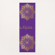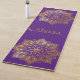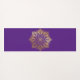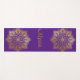 A beautiful yoga or exercise mat featuring a hand-drawn mandala design in a gold tone over a dark purple coloured background.