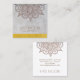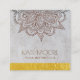 Mandala with silver background and gold metallic edge, yoga or holistic profession business card. A subtle neutral textured grey with striations of grey, metallic gold and a lovely modern sans serif typeface. This card was inspired by Indian Sari fabrics, but realised as a neutral palette rather than a bold palette. Subtlety with a metallic accent flair. Ideal for a yoga instructor, massage therapist, spa services and more. A unique low key blend of neutral and strong gold. This design is best showcased on a glossy card stock.