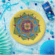 Colorful hand painted mandala design - green, yellow, red, blue, gold. Harmony and nature alignment mood.