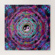 A teal, purple and blue mandala featuring a yin yang in the middle by Amelia Carrie.