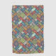Graphic of assorted mandalas within square and rectangular shapes in a tiled design, warm muted colours, seamless repeat pattern