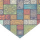 Graphic of assorted mandalas within square and rectangular shapes in a tiled design, warm muted colours, seamless repeat pattern