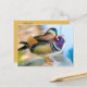 Postcard featuring a beautiful mandarin duck, with fantastic orange, blue, green and white feathers, standing by water. Perfect card for animal, bird, duck and nature lovers. Photo taken in Arcadia, California.