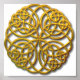 An intricate Celtic knot intertwined to form a circle of a rich antique gold. Computer art by Kathie Miller.