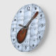 Mandolin~Rolled Sheet Music~Blue Tint Background ~ Large Clock