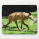 Maned Wolf (Chrysocyon brachyurus) walking on grass seen of profile