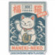 Bring luck and retro style to your space with this vintage Maneki Neko design. This lucky beckoning cat art blends Japanese aesthetic waves with classic matchbox style for a unique fortune cat look.